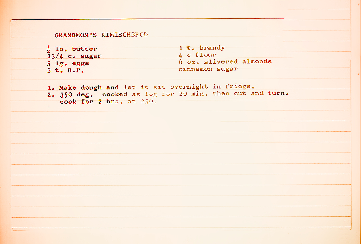 I typed this recipe on an index card at least 40 years ago, long before personal computers existed.