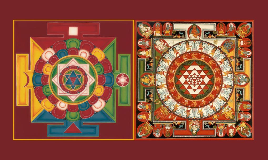 In the Indian tradition, three-dimensional yantras are carved out of crystal, mercury, and stone. Tibetan Buddhism is famous for its mandalas of colored sand.